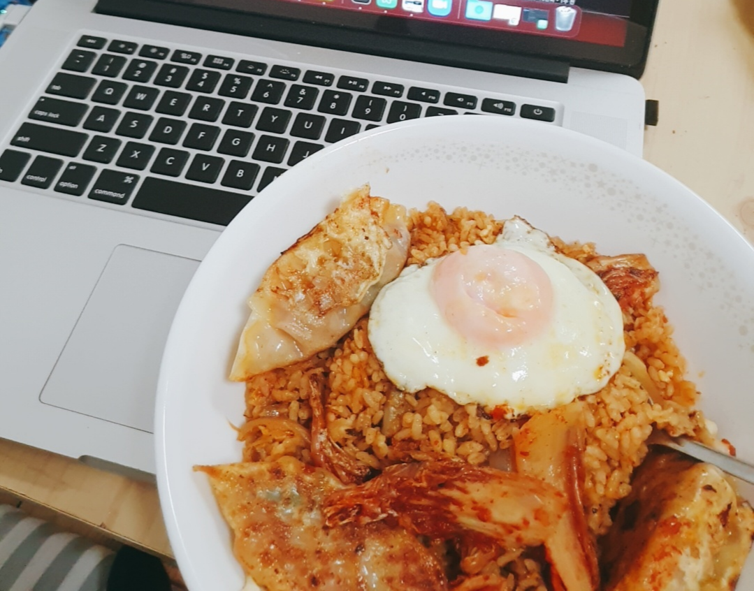 언젠가 뭐랑 볶았는지 기억안나는데 볶음밥이랑 짬뽕군만두랑 계란이랑 먹었어요