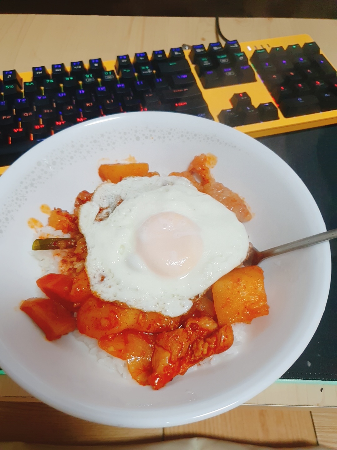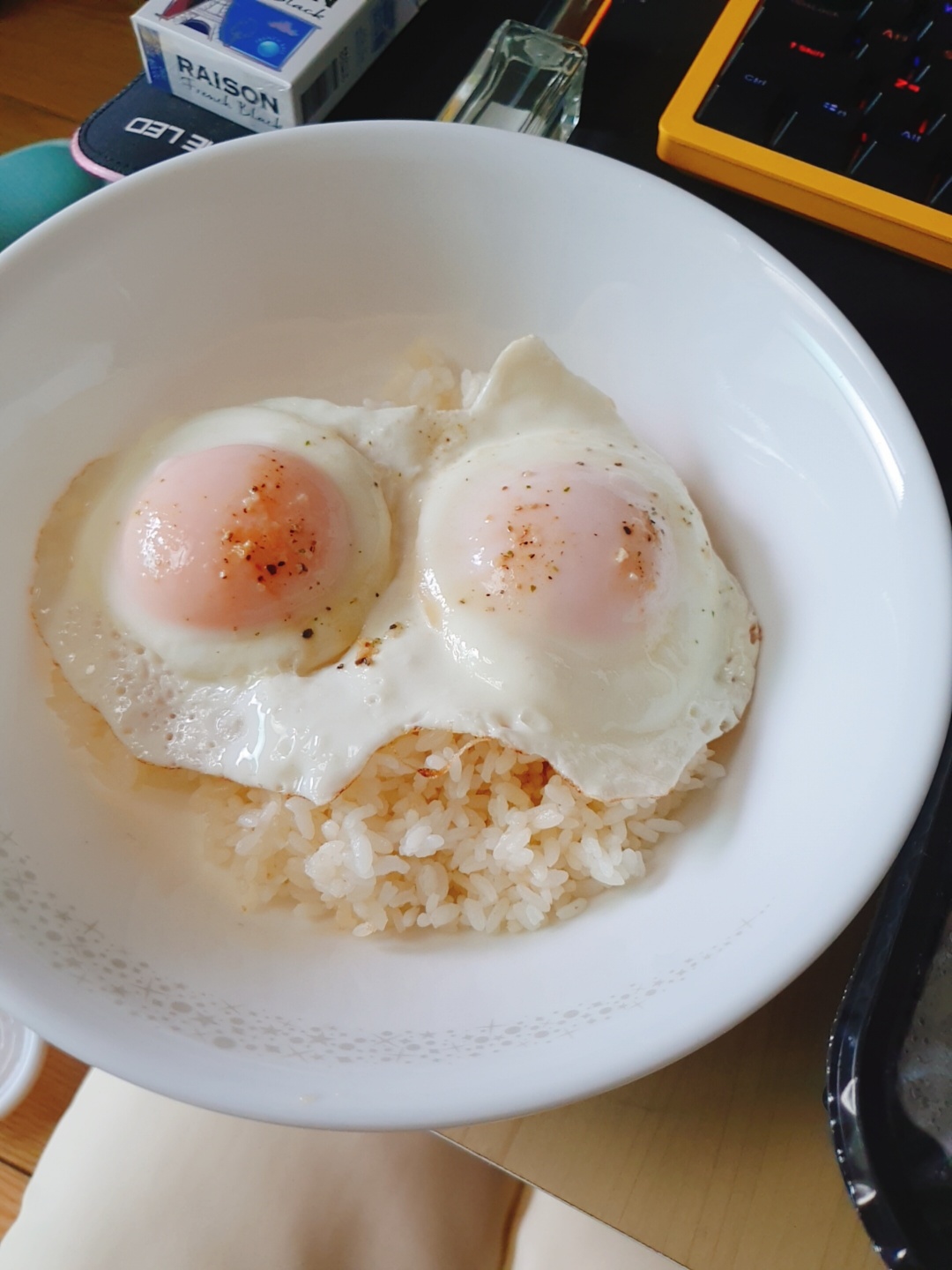 바로 계란후라이 2개에 공기밥 해서 먹었습니다.